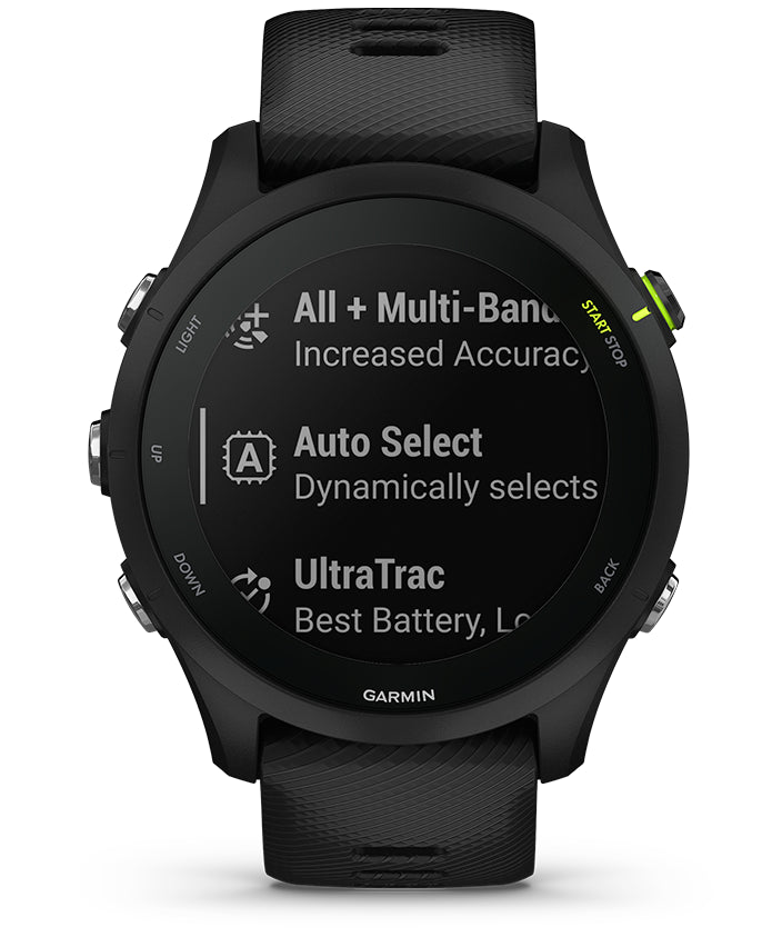The watch ensures the best positioning accuracy in any environment while optimizing the device's battery life with multi-band GNSS with SatIQ technology.