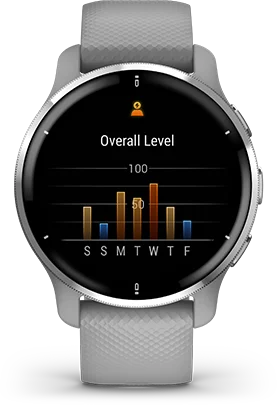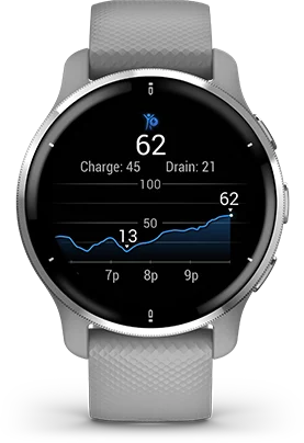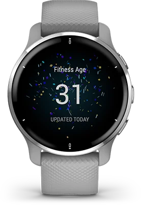 How old is your body? The Garmin Venu 2 uses your chronological age, activity level, resting heart rate and BMI to estimate your body's age compared to how old you are. Want to return to when you were 29? Get tips on how to lower your fitness age.