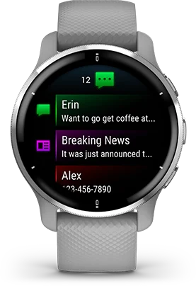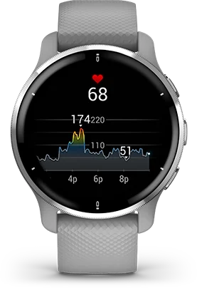 The watch will constantly sample your heart rate and will alert you if you if it stays too high or too low while at rest. See how hard you work during activities. Even swimming since the Garmin Venue 2 is water-resistant.